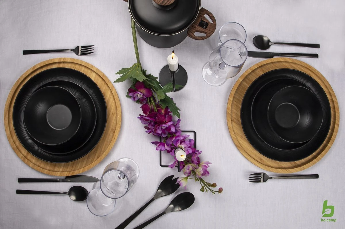 Een hip 16-delig serviesset gemaakt van 100% melamine. Melamine servies is vrijwel onbreekbaar, zeer licht van gewicht, kraswerend en vaatwasmachinebestendig. Geschikt voor 4 personen en bestaat uit 4 dinerborden, 4 ontbijtborden, 4 kommen, 4 mokken. Ideaal voor mee naar de camping of in de tuin. Food approved.
