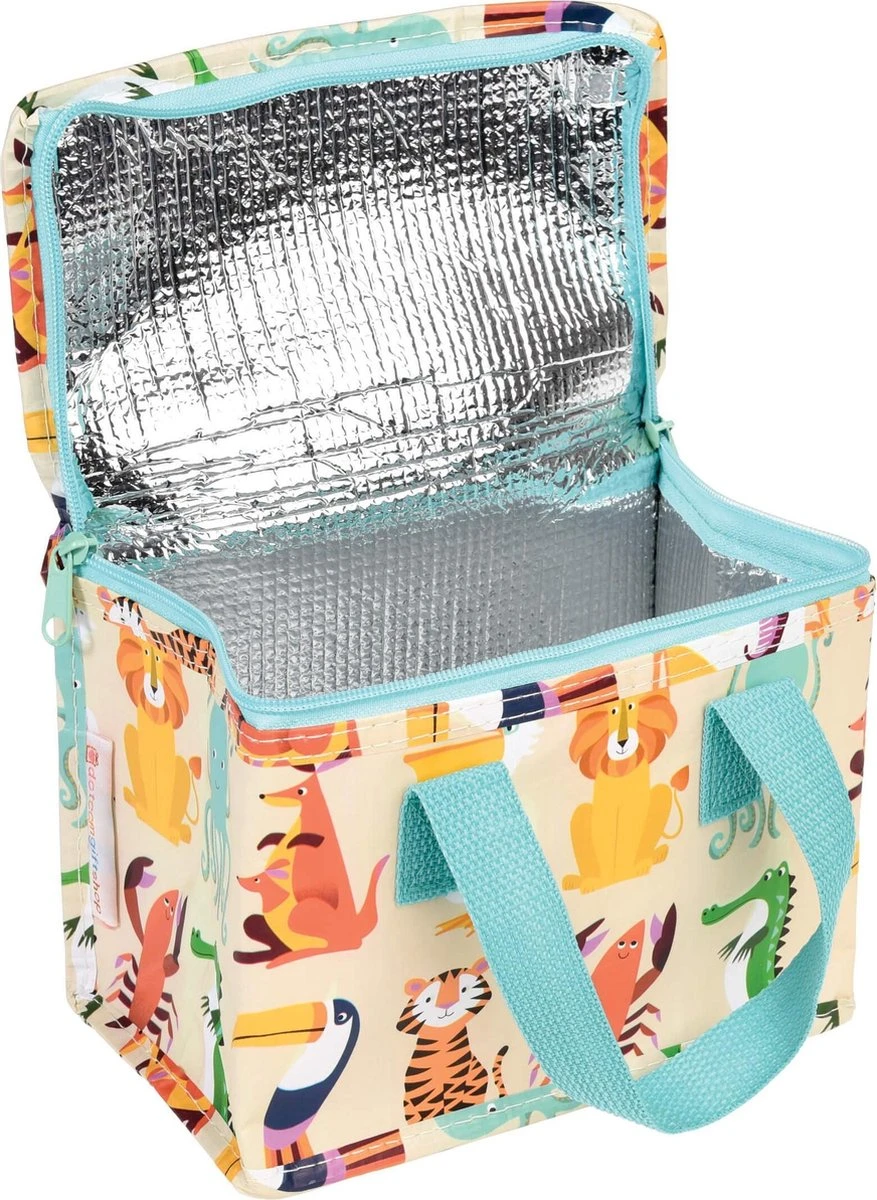 Koeltas met wilde dieren Frishoudende lunchtas met wilde dieren. Ideale grootte voor daguitstappen naar bv. de zee. Ook geschikt als lunchtas op het werk of …