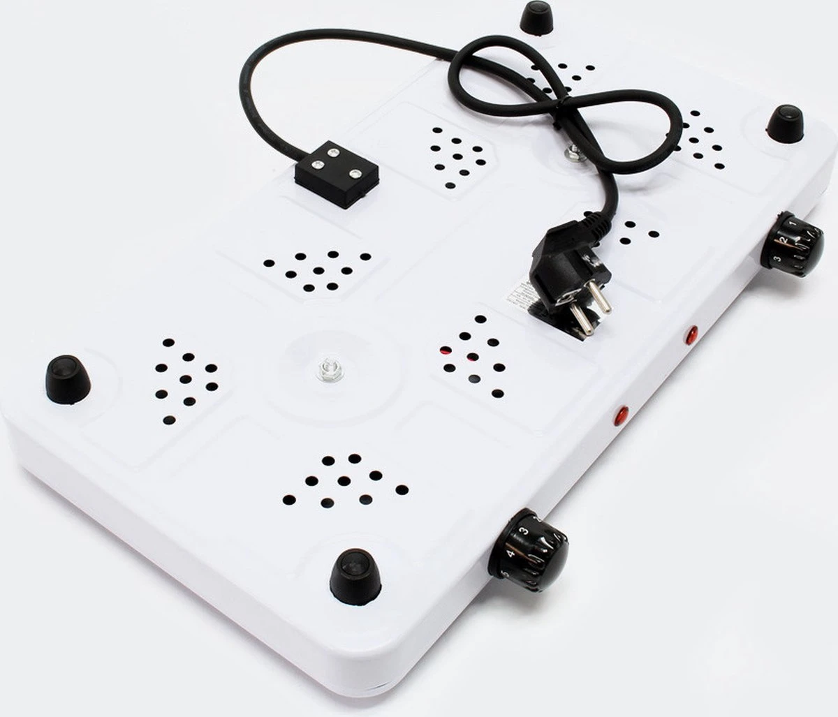 Universele dubbele kookplaat, ideaal voor gebruik in huis, tuin en kampeertochten. Met dit draagbare kooktoestel bereid u waar dan ook eenvoudig uw warme maaltijd. Met een 230V aansluiting kunt u met 2 pannen tegelijk koken op deze 2 pits kookplaat.