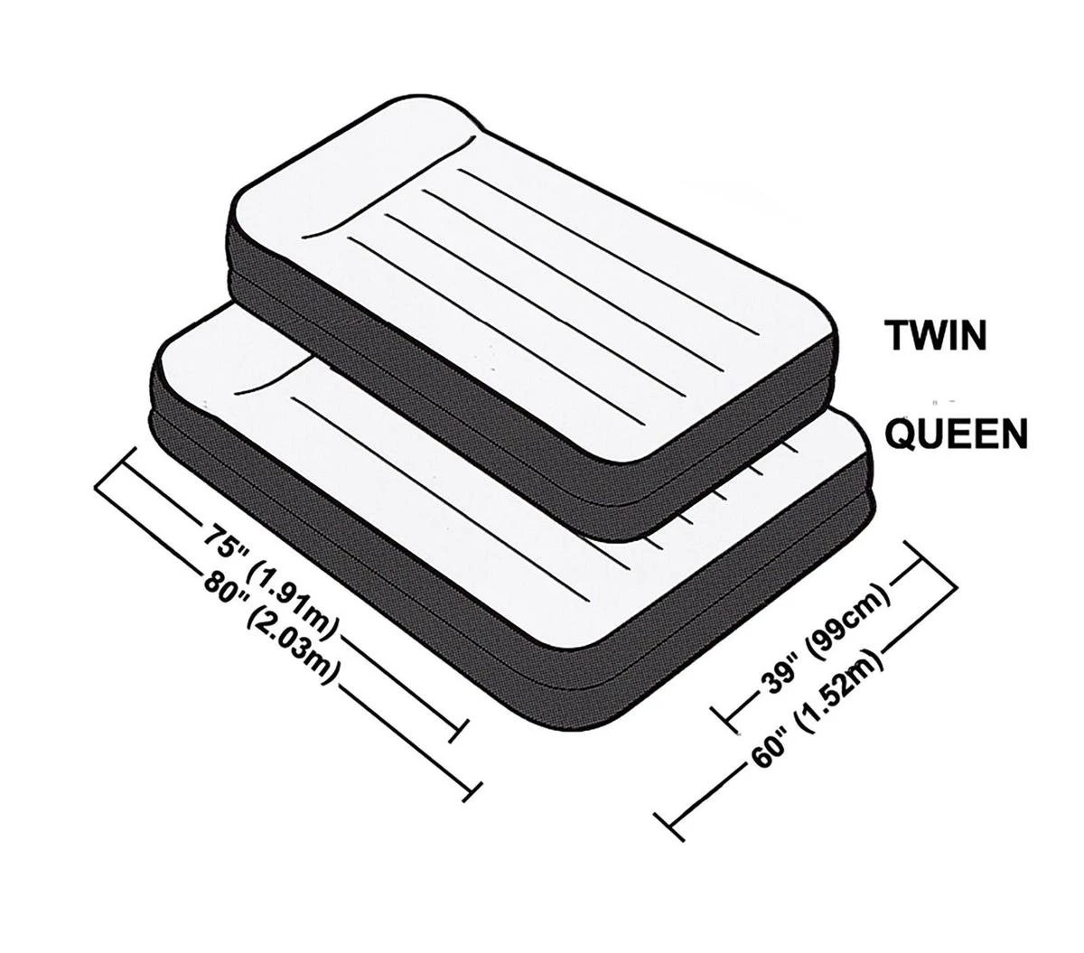 Let op: Het ligoppervlak kan tot 10 cm afwijken van de productlengte, houd hier rekening mee tijdens het bestellen. Bij het eerste gebruik moet het materiaal eventueel nog uitrekken, ’s ochtends wat nieuwe lucht toevoegen is dan wellicht nodig.