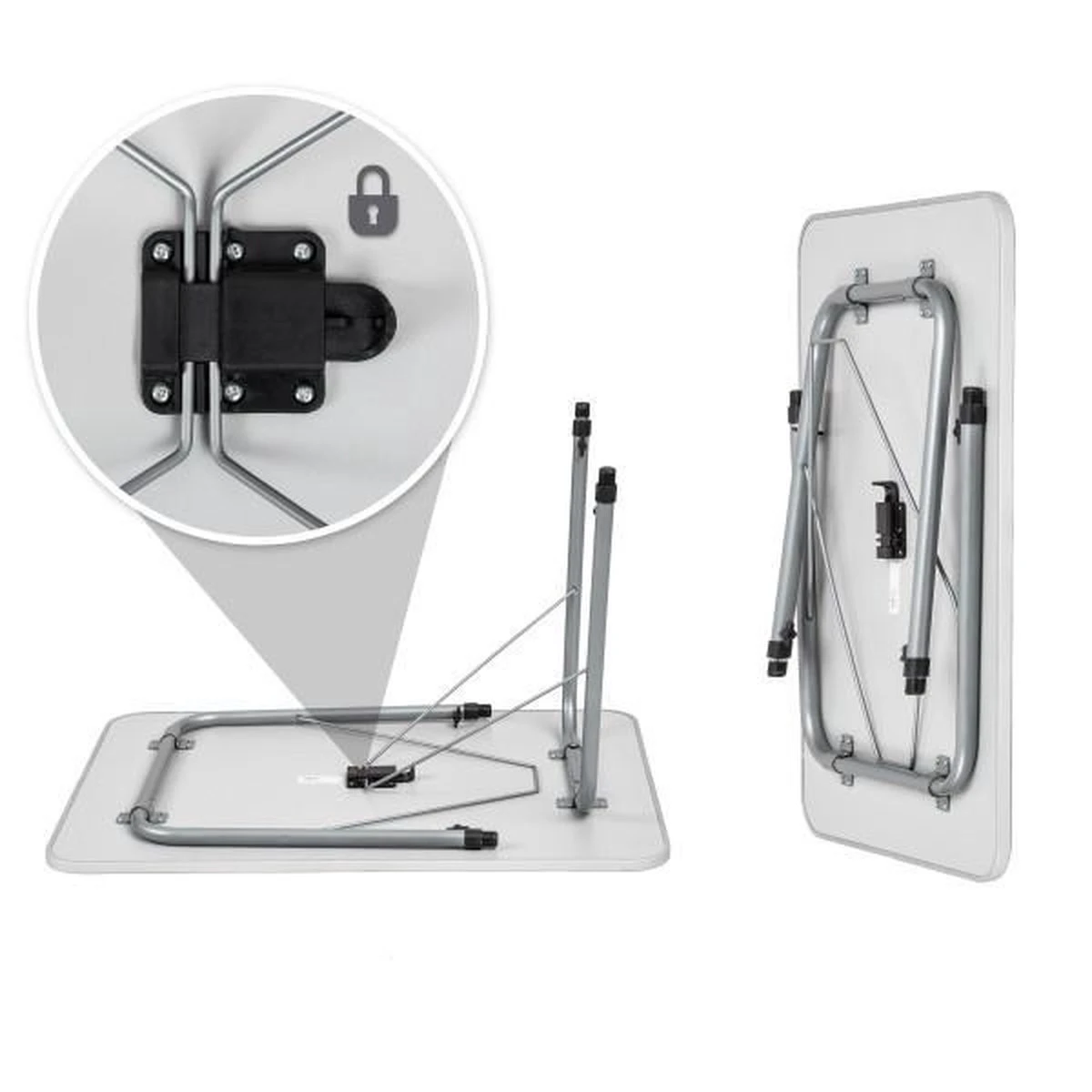 Een heel robuuste en compacte campingtafel. Individueel bruikbaar op het balkon, in de tuin, bij het kamperen of bij de volgende barbecue. De gefineerde tafelplaat is resistent tegen vocht en andere omgevingsinvloeden. De campingtafel heeft een aluminium rand om het tafelblad. De telescooppoten zijn traploos verstelbaar in de hoogte en kunnen zo op de gewenste hoogte ingesteld worden. Ingeklapt kan ze overal meegenomen en plaatsbesparend opgeslagen worden.